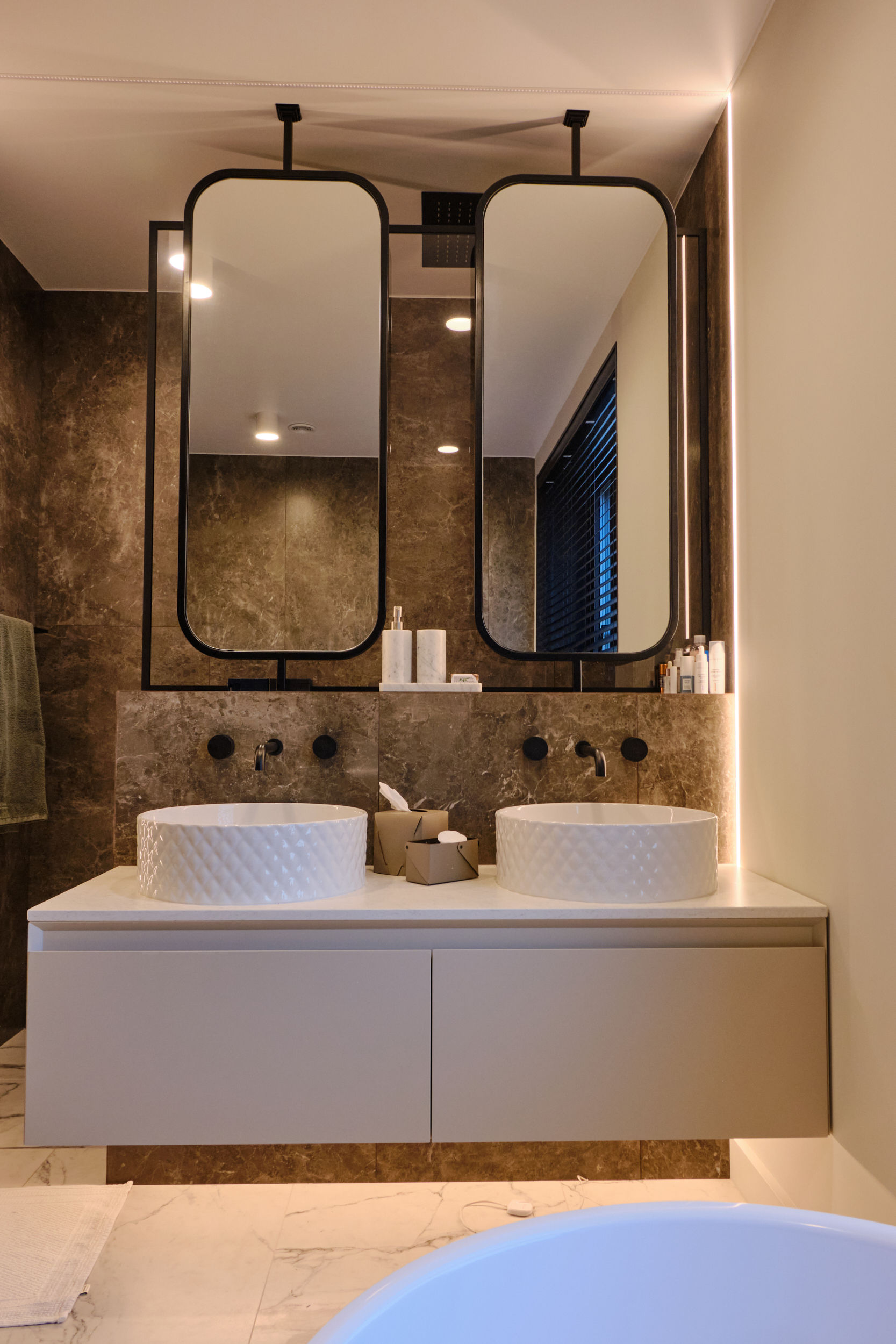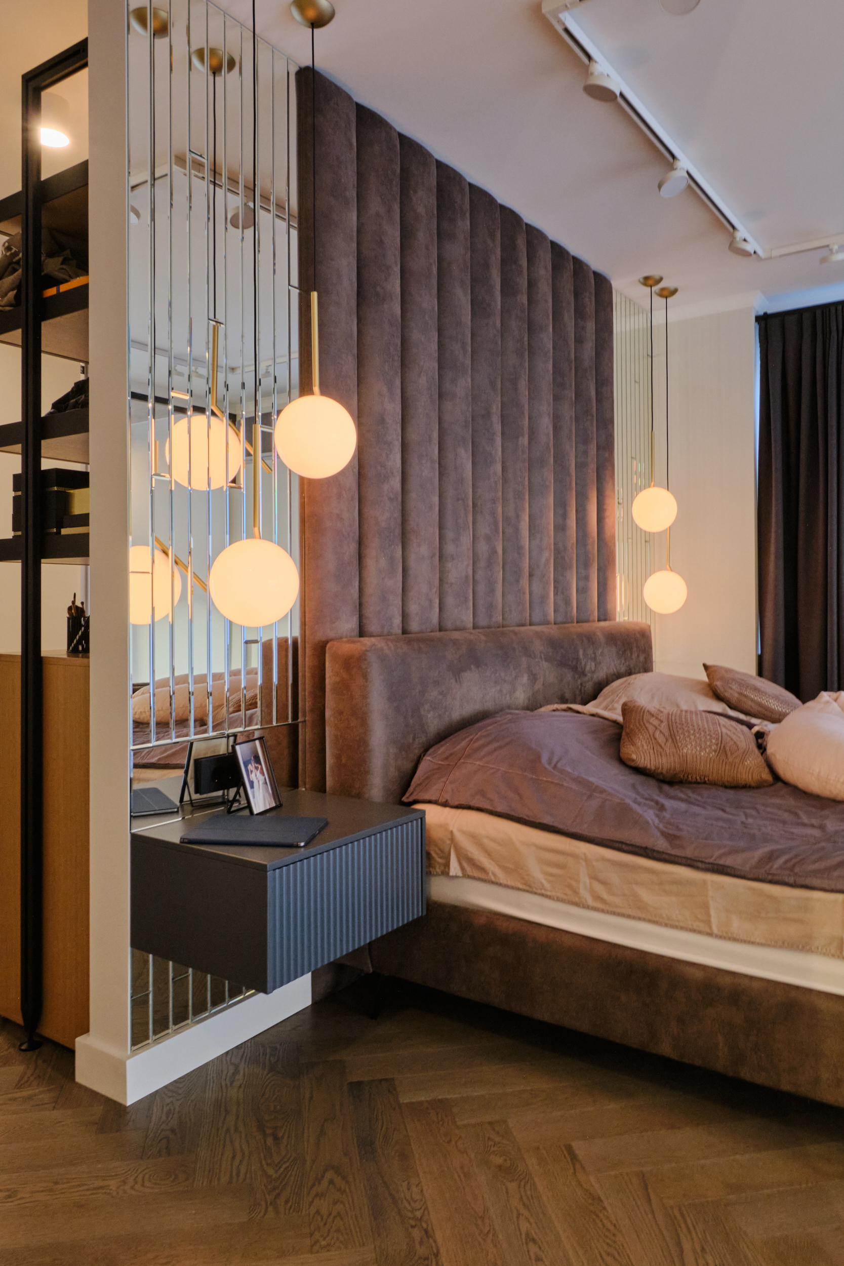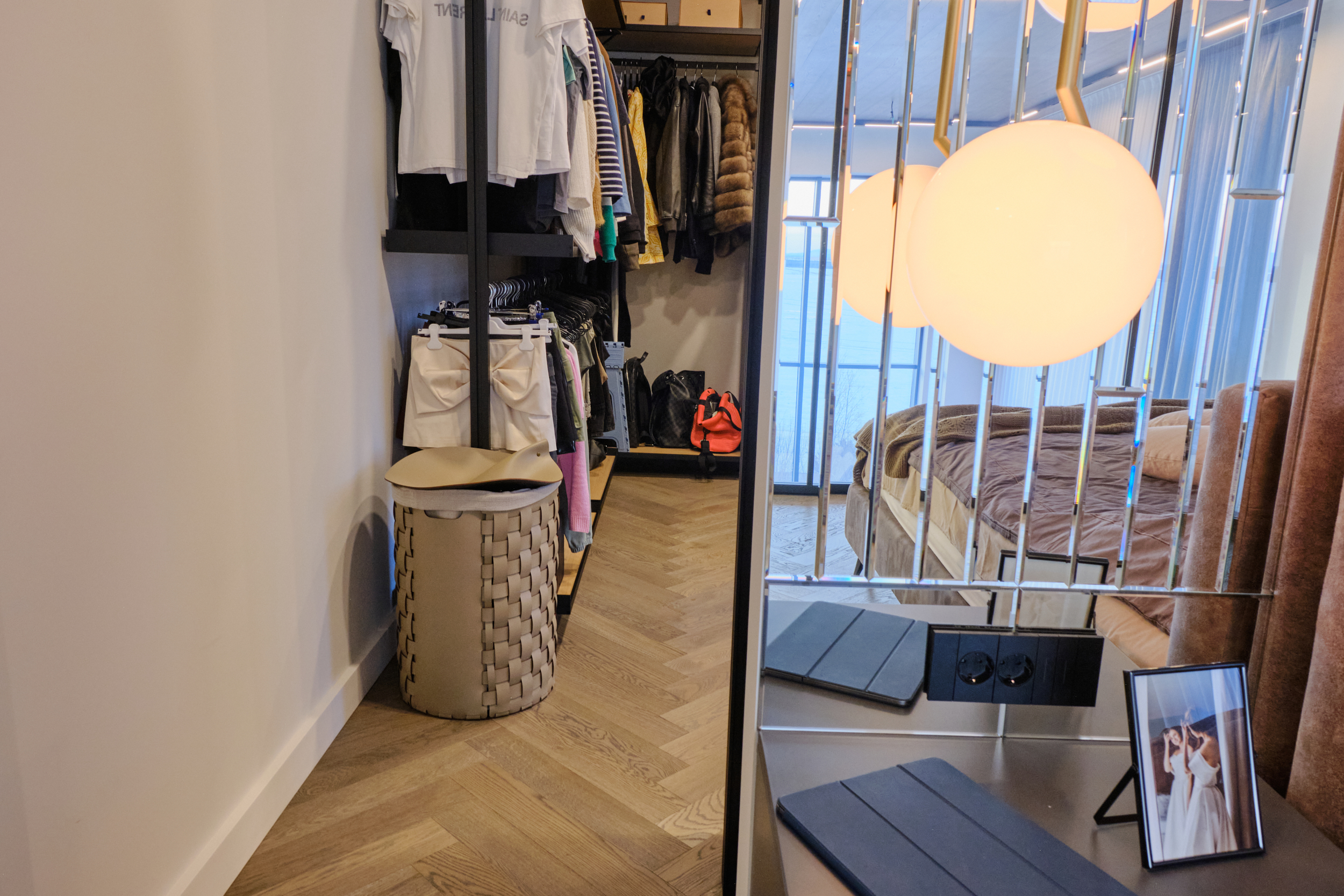 Уникальная двухуровневая квартира, созданная как частный дом в городской многоэтажке. Пространство продумано до мелочей, а панорамные окна открывают завораживающий вид на реку, даря ощущение уединения и свободы. Заказчики — молодая пара, много путешествовавшая, что сформировало у них стремление к эстетике и премиальному комфорту. Этот проект — идеальное сочетание городской динамики и домашнего уюта высокого уровня.